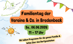 Der Familientag der Vereine & Co. am 06.06.2026 von 11 – 17 Uhr wird von vielen Bredenbecker Vereinen und lokalen Akteuren gestaltet und lockt Familien und Interessierte Menschen nach Bredenbeck, um sich über das Dorfgeschehen zu informieren und durch ein tolles Programm und leckere Verköstigung einen schönen Tag zu verbringen.…